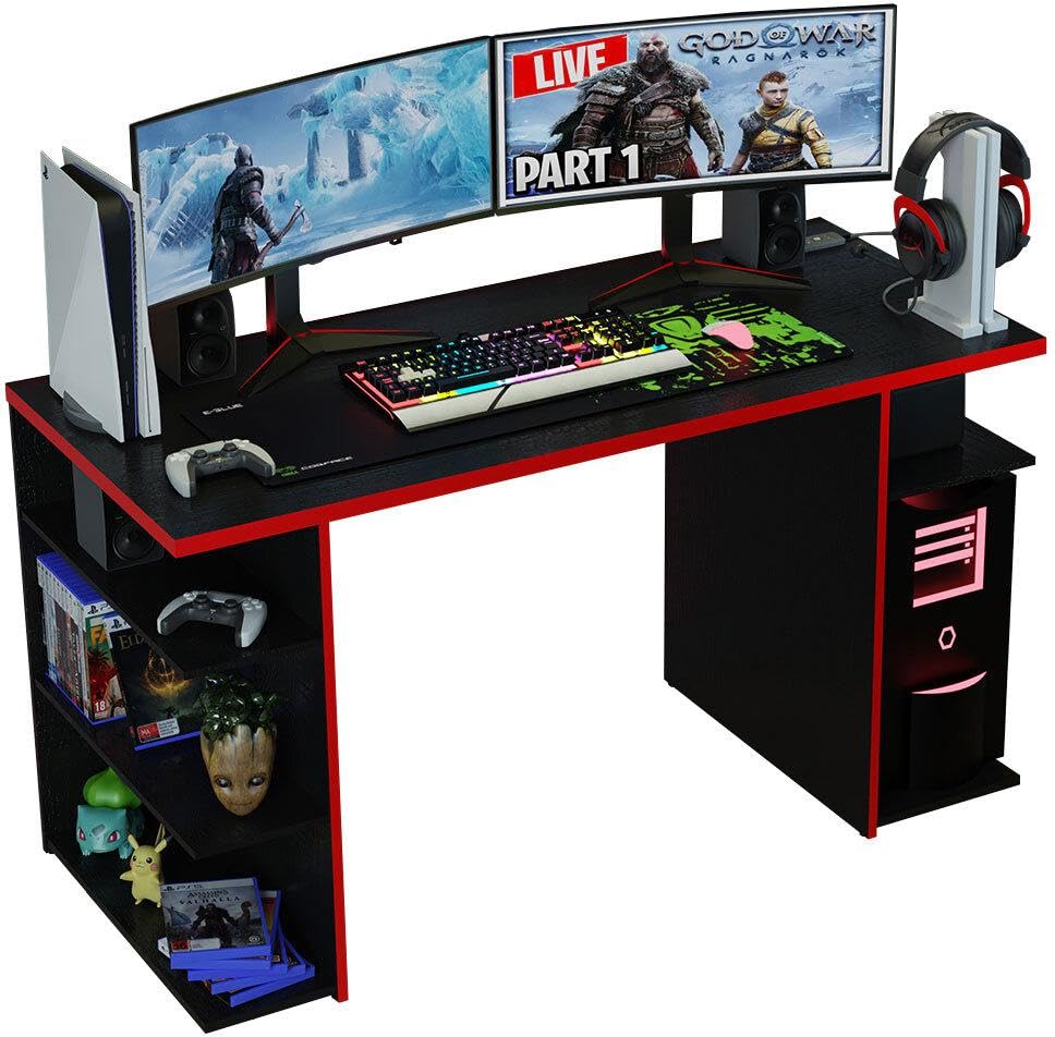 - هذه القطعة من الأثاث من ماديسا مصنوعة بتركيزها على الألعاب. تم تصميم هذا المكتب ليناسب شاشات متعددة بالإضافة إلى مساحة كافية لتخزين وعرض الملحقات المفضلة لديك، كما أنه يتميز برف مخصص وحلقة كيبل لجهاز كمبيوتر الألعاب الخاص بك.