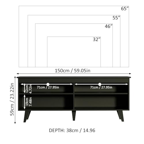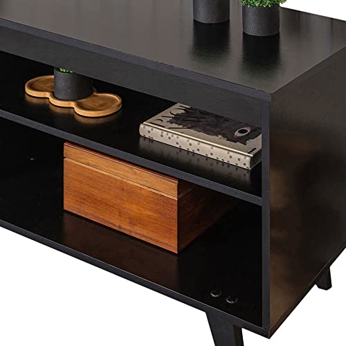 Madesa - ترابيزة كونسول للتلفزيون من ماديسا مودرن انترتيمنت سينتر، وحدة للتلفزيونات، حامل تلفاز حتى 65 بوصة مع إدارة أسلاك وأرفف تخزين (أسود)