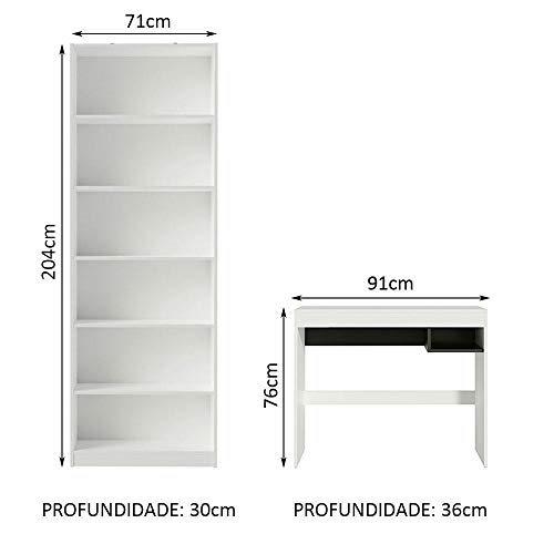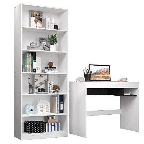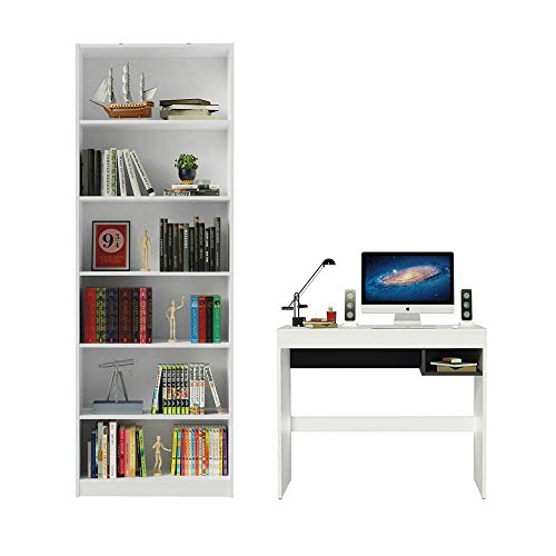 Madesa - مكتب روبي + مكتبة 6908 من ماديسا، أبيض، مدهون، خشب