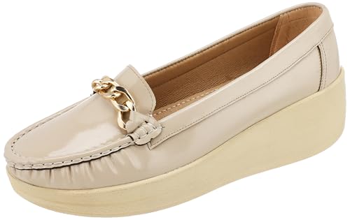 MADYOS - حذاء مغلق بنعل مطاطي 5 سم مع اكسسوار بسيط ناعم من ماديوس لون بيج مقاس 41 EU للنساء