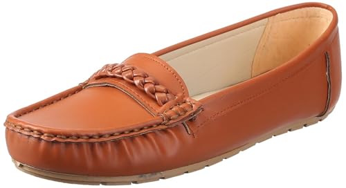 MADYOS - حذاء كاجوال بمقدمة مغلقة وكعب مسطح 1 سم ونعل من المطاط للنساء من ماديوس، لون هافان، مقاس 38