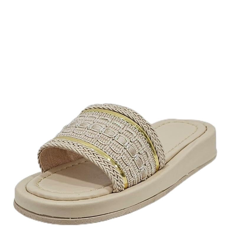MADYOS - شبشب مسطح من الالياف الصناعية بنعل متباين مفتوح من الامام للنساء من ماديوس، لون بيج، مقاس 37 EU