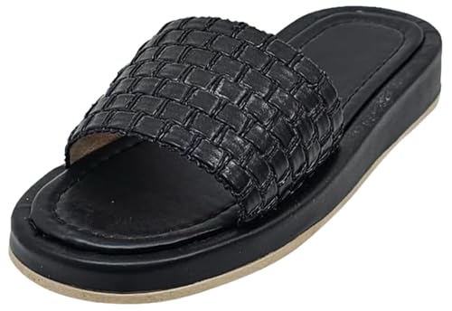 MADYOS - شبشب مسطح من الالياف الصناعية بنعل متباين مفتوح من الامام للنساء من ماديوس، لون اسود، مقاس 37 EU