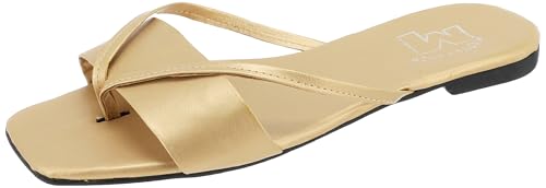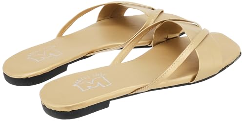 MADYOS - شبشب مسطح من الالياف الصناعية بنعل متباين مفتوح من الامام للنساء من ماديوس، ذهبي، مقاس 37 EU