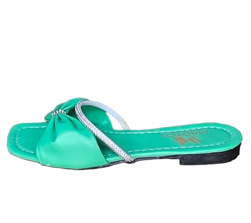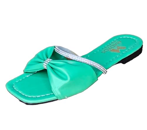 MADYOS - شبشب فلات للنساء من ماديوس مفتوح الامام بنعل متباين الياف صناعية لون اخضر مقاس 41 EU