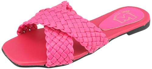 MADYOS - شبشب فلات للنساء مفتوح من الأمام بنعل متباين مصنوع من ألياف صناعية من ماديوس، زهري،، 38 EU