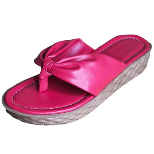 MADYOS - شبشب مسطح للنساء مفتوح من الأمام بنعل متباين مصنوع من ألياف صناعية من ماديوس، أحمر، مقاس 39