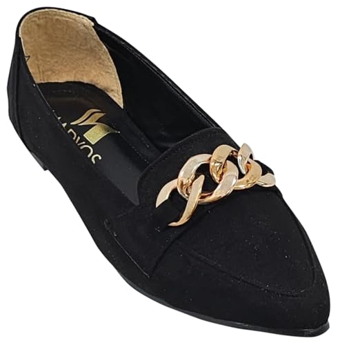 MADYOS - حذاء مسطح من الشمواه بطرف مدبب مع اكسسوار بسيط ناعم للنساء من ماديوس، موديل اكسسوار حديث، لون اسود، مقاس 37 EU