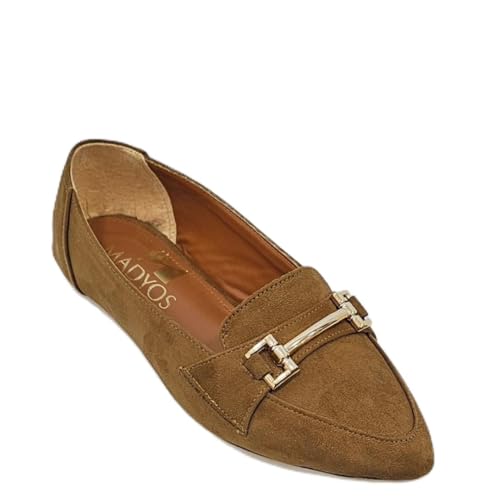 MADYOS - حذاء مسطح من الشمواه بطرف مدبب مع اكسسوار بسيط ناعم للنساء من ماديوس، موديل اكسسوار حديث، لون هافان، مقاس 37 EU
