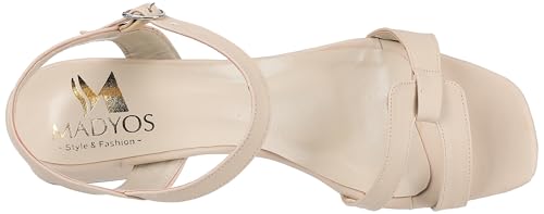 MADYOS - صندل مفتوح من الأمام بكعب 3 سم ونعل متباين للنساء من ماديوس، مصنوع من الألياف الصناعية، لون بيج، مقاس 41 EU