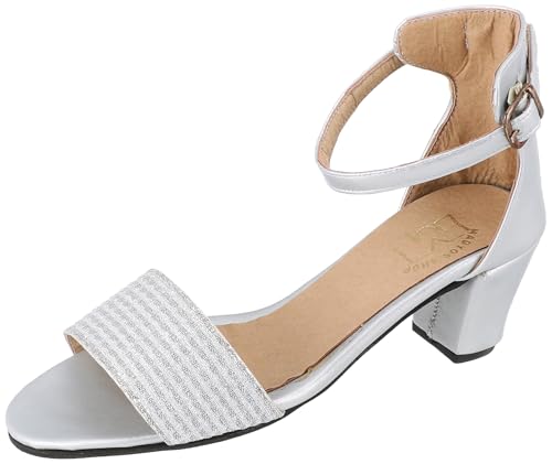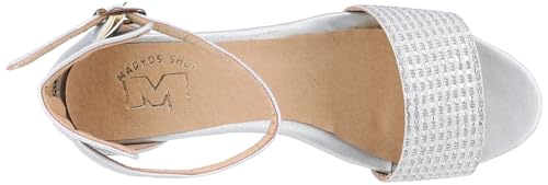 MADYOS - صندل مفتوح من الامام بكعب 3 سم ونعل متباين للنساء ماديوس مصنوع الالياف الصناعية لون فضي مقاس 38 EU