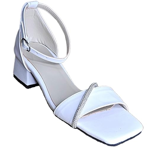 MADYOS - صندل مفتوح من الأمام بكعب 3 سم ونعل متباين للنساء من ماديوس، مصنوع من الألياف الصناعية، لون أبيض، مقاس 38 EU