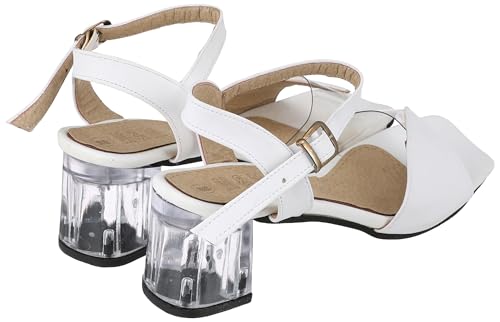 MADYOS - صندل مفتوح من الامام بكعب 4 سم ونعل متباين للنساء من ماديوس، مصنوع من الالياف الصناعية، لون ابيض، مقاس 38 EU
