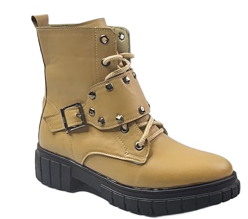 MADYOS - بوت جلد صناعي بتصميم أنيق وحديث بنعل سميك للتنزه للنساء من ماديوس، كافيه، مقاس 39 EU