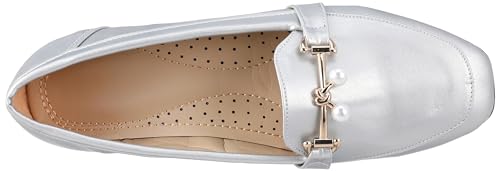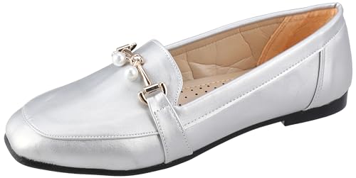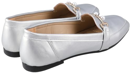 MADYOS - حذاء باليه فلات بمقدمة مغلقة وكعب مسطح 1 سم ونعل مطاطي للنساء من ماديوس، لون فضي، مقاس 38، موديل R15-79