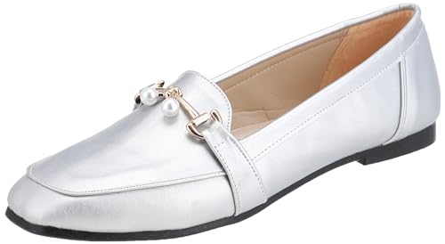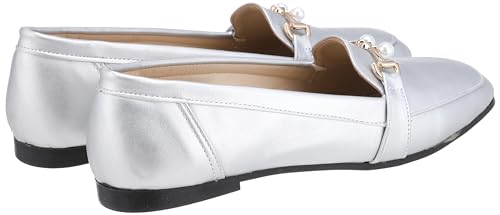 MADYOS - حذاء باليه فلات بمقدمة مغلقة وارتفاع كعب 1 سم ونعل مطاط للنساء من ماديوس، فضي، مقاس 41، موديل R15-79