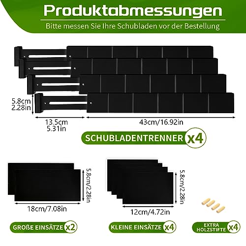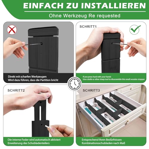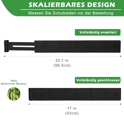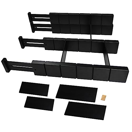 Mafagwre - فواصل أدراج من الخيزران قابلة للتعديل (بطول 43 إلى 56 سم) مزودة بنابض مناسبة للمطبخ ودولاب الملابس ودرج الأطفال والمكتب من مافاجوير، لون أسود، مجموعة من 9 قطع (4 طويلة + 9 قصيرة)