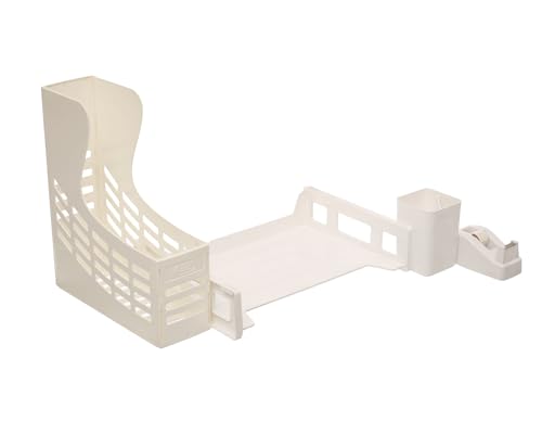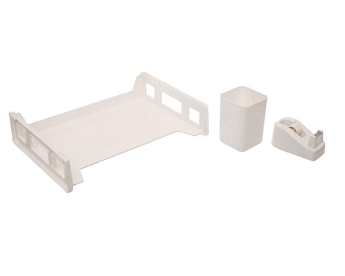 Generic. - مجموعة حافظة الملفات والمجلات تتضمن صينية وأداة تقطيع وحامل أقلام من مواد متينة واستخدام طويل الأمد - بلون أبيض
