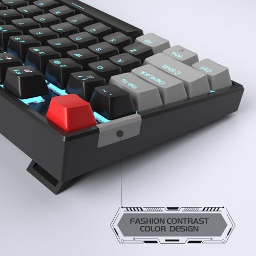 MageGee - لوحة مفاتيح ميكانيكي 75% مع مفتاح احمر وإضاءة خلفية ليد زرقاء و87 مفتاح تي كيه ال سلكي للكمبيوتر واللاب توب من ماجيجي - رمادي/أسود