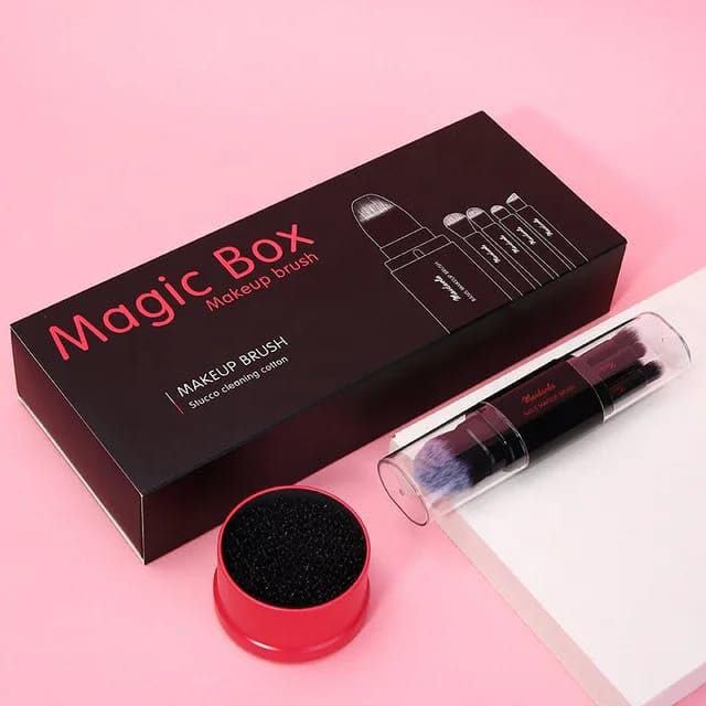 Generic - فرشاة ماجيك بوكس - فرش مكياج للسفر، مجموعة فرش مكياج احترافية محمولة بشعيرات نايلون 5 قطع مع صندوق للمكياج اليومي