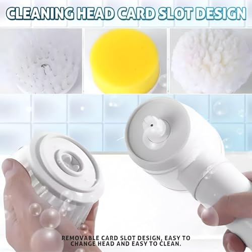 - رؤوس قابلة للتبديل 5 في 1 تغطي جميع الأسطح المنزلية - فرشاة بشعيرات متينة للبلاط والجص، فرشاة ناعمة للمناطق الحساسة، إسفنجة مسطحة للأحواض، وسادة تنظيف للبقع الصعبة، فرشاة زاوية للمساحات الضيقة.