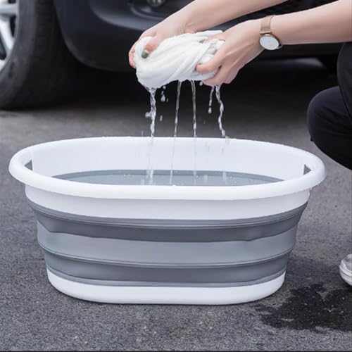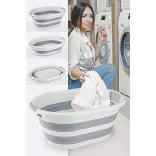 Spaceshoop - سبت غسيل قابل للطي 38 لتر (أبيض، رمادي)