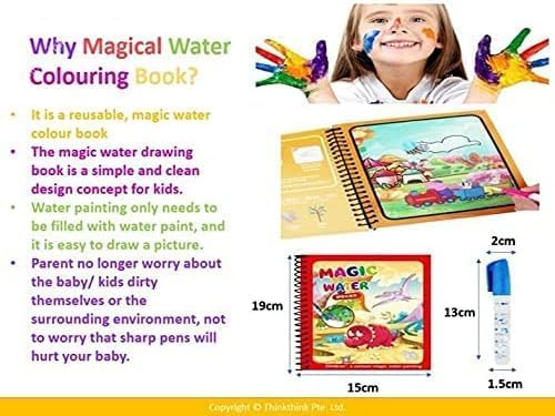 Generic - كتاب تلوين سحري بالماء ، رسومات متنوعة، خالي من الفوضى، للأطفال (الأولاد والبنات)