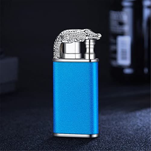 PETSBURG - ولاعة للسيجار سحرية ومعدنية ومزدوجة اللهب من البوتان، مقاومة للرياح للرجال (أزرق)