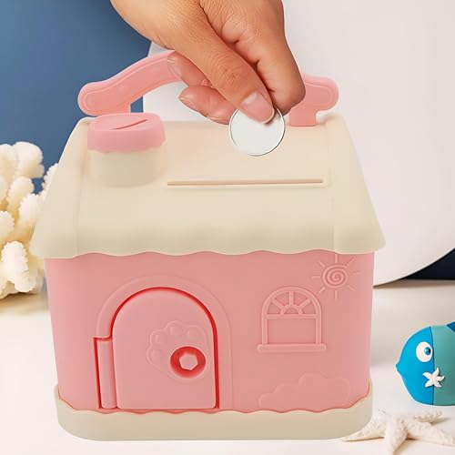 Generic - حصالة نقود رائعة بتصميم منزل ساحر مع مساحة تخزين واسعة بشكل استثنائي، تتميز بباب مفتوح آمن ومفتاح قوي لتوفير المال بشكل ممتاز، مثالية لتطوير عادات الادخار، حصالة نقود على شكل رسوم متحركة للأصدقاء، هدي