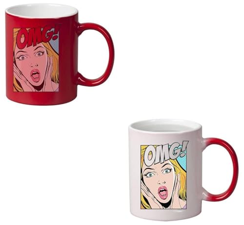 Generic - مج سحري للقهوة أو الشاي بتصميم فتاة وكلمة «Omg»، لون أحمر، RED-02223، بورسلين