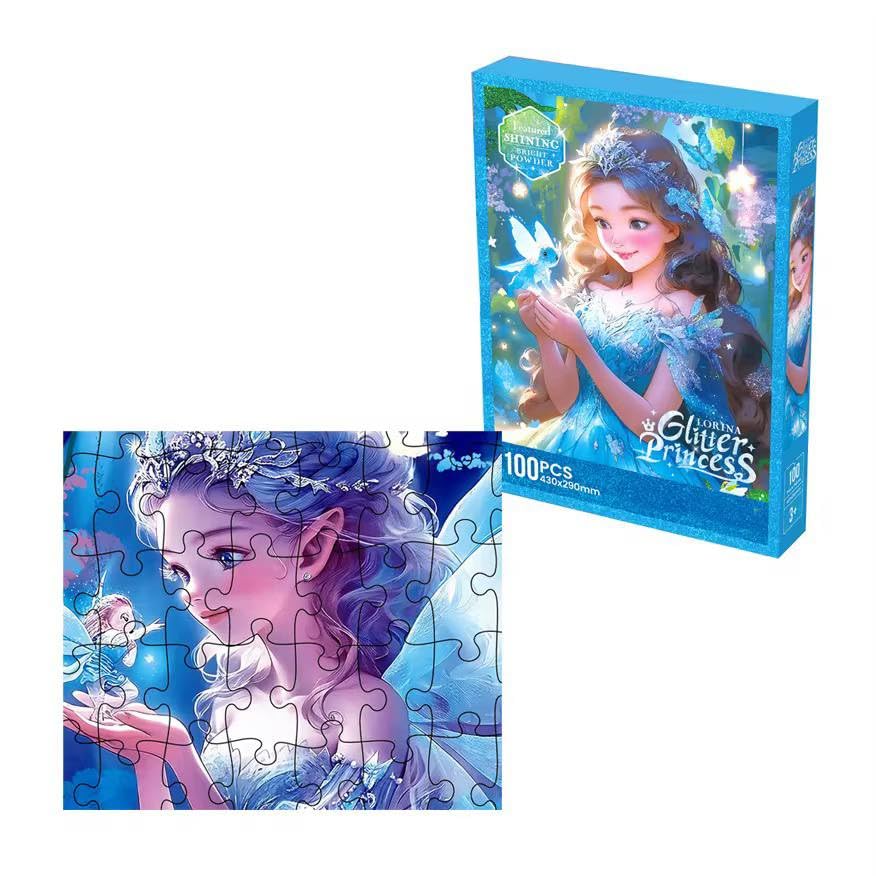 Generic - مجموعة بازل فاخرة بتصميم أميرة سحرية، 100 قطعة، إطار أزرق براق، لوحة فنية للأطفال، مقاس 43×26 سم