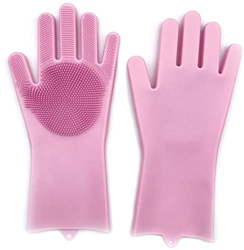 generic - قفازات تنظيف سيليكون سحرية قابلة لاعادة الاستخدام صديقة للبيئة مقاومة للحرارة، رائعة لغسل اطباق المطبخ والحمام والمنزل وغسل السيارة والعناية بشعر الحيوانات الاليفة (زهري)