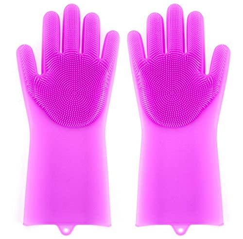generic - قفازات سيليكون سحرية قابلة لاعادة الاستخدام مع اداة غسيل الاطباق مقاومة للحرارة لتنظيف المنزل والسيارة والعناية بشعر الحيوانات الاليفة، زوج واحد (ارجواني) 652