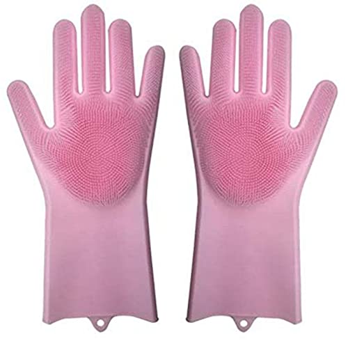 generic - قفازات سيليكون سحرية قابلة لاعادة الاستخدام مع منظف للغسيل، قفازات مطبخ سميكة مقاومة للحرارة، قفازات غسيل الاطباق للمنزل وتنظيف السيارة والعناية بشعر الحيوانات الاليفة (بينك)
