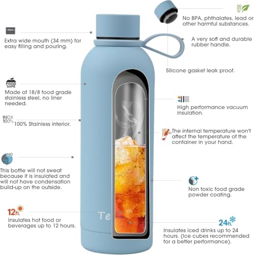 - - ترمس زجاجي من الفولاذ المقاوم للصدأ 304 بسطح مزدوج وأملس من الداخل.