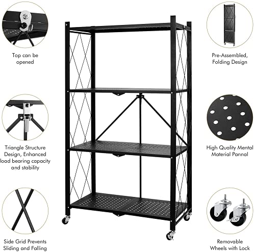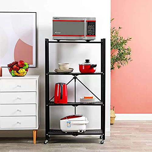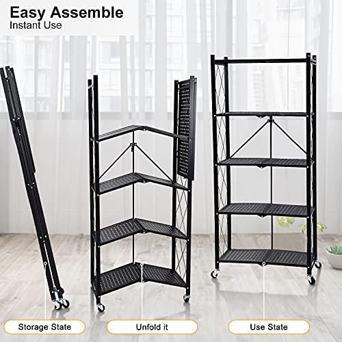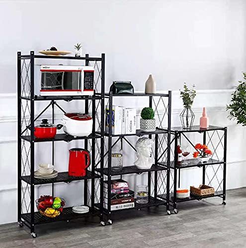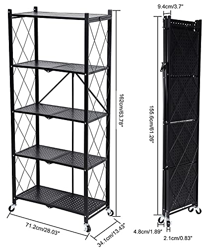 MagicFox - وحدة رفوف تخزين قابلة للطي بعجلات بسعة كبيرة (لا تتطلب تجميع) رف منظم رفوف ستيل شديد التحمل للمطبخ والجراج والغسيل وتنظيم ادوات الحمام (5 طبقات)