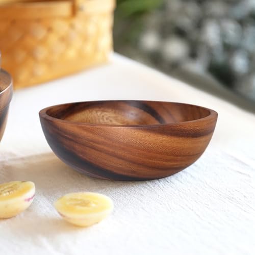 MAGICLULU - بولة خشبية، قطعة واحدة، وعاء للعجين والفاكهة والمعكرونة، بولة خشبية كبيرة للسلطة، أدوات مائدة خشبية غير قابلة للكسر، بولات طعام صغيرة على النمط الياباني الأسيوي من ماجيك لولو
