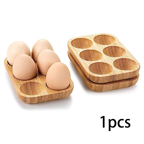 MagiDeal - حامل بيض خشبي عملي مكون من 6 أقسام لتنظيم البيض من ماجيديل، صينية تخزين البيض للثلاجة وسطح الطاولة وخزانة المطاعم