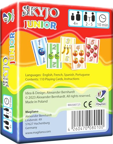 - عدد الألعاب: من 2 إلى 8 لاعبين. العمر: 8 سنوات فما فوق. مدة اللعبة: تقريبًا 30 دقيقة. اللغات: ألماني, إنكليزي, فرنسي, اسباني, الإيطالي. المواد: 150 بطاقة لعب، 1 لوحة ألعاب، 1 تعليمات لعبة (اللغة الإنجليزية غير مضمونة). صُنع في ألمانيا.