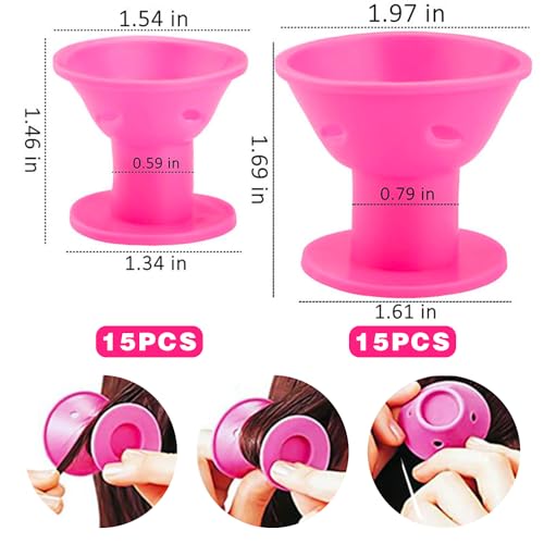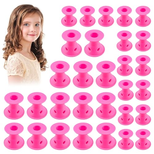 MagiSel - بكرات شعر من ماجيسيل، عبوة من 30 قطعة من ادوات تجعيد الشعر المرنة المصنوعة من السيليكون، ادوات تصفيف الشعر القصيرة والطويلة (بينك)