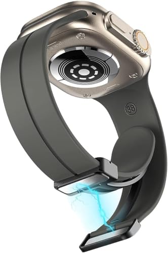 China - سوار مغناطيسي لساعة آبل الترا 44 ملم، سوار رياضي من السيليكون الناعم للرجال والنساء متوافق مع سلسلة اي ووتش 8/7/6/5/4/3/2/1 (رمادي)