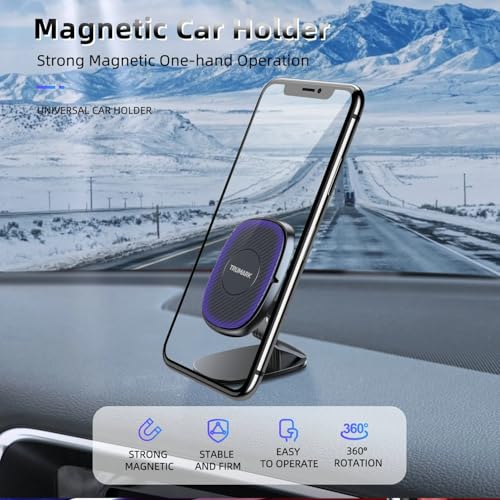 Trumark - حامل موبايل مغناطيسي للسيارة قابل للتعديل بزاوية 360 درجة لقيادة آمنة بدون استخدام اليدين