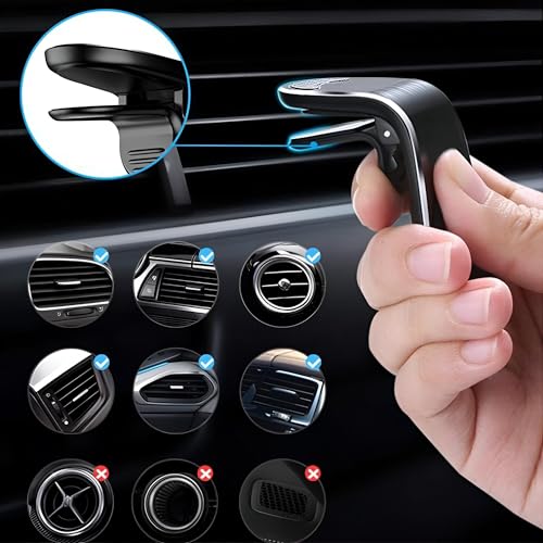 Generic - حامل موبايل مغناطيسي للسيارة حامل مريح لفتحة التهوية للموبايلات الذكية مع مشبك على شكل حرف L، متوافق مع آيفون وسامسونج وهواوي وشاومي (مجموعة من قطعتين)