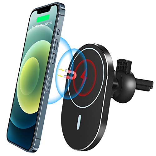 - 【مغناطيسي فائق وشحن سريع بقدرة 15 واط】9 مغناطيسات قوية مدمجة يمكنها شفط هاتفك بإحكام دون الانزلاق حتى عبر الصدمات والانعطاف. يوفر شاحن السيارة ماج سيف وظيفة المحاذاة التلقائية التي يمكنها قفل ملف الشحن تلقائيًا للشحن السريع المغناطيسي بحد أقصى 15 واط.