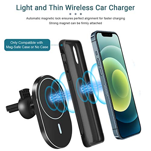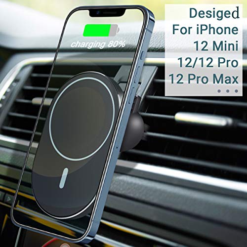 Topume - شاحن سيارة لاسلكي مغناطيسي [اصدار مطور 2021] حامل جوال للسيارة سريع الشحن توبوم 15 واط، حامل جوال بفتحة تهوية متوافق مع ايفون 12/12 ميني/12 برو/12 برو ماكس (اسود، دائري)