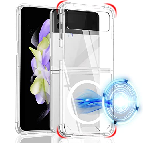 ZJRUI - جراب حماية شفاف مغناطيسي قابل للطي لموبايل سامسونج جالاكسي زد فليب 4 5G، متوافق مع شاحن ميجاسيف بقاعدة تثبيت للسيارة ومضاد للصدمات ومقاوم للخدوش، سيليكون بولي يوريثين اللدن بالحرارة