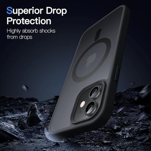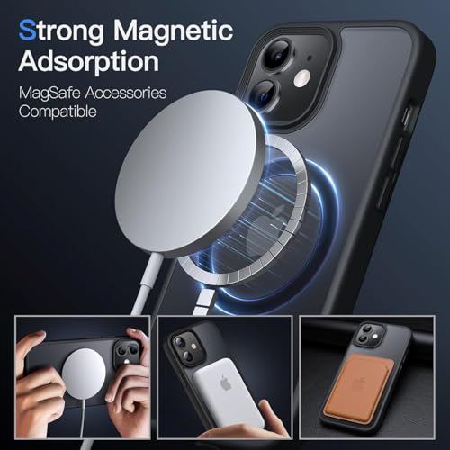 Generic - جراب حماية مغناطيسي لموبايل آيفون 12/12 برو 6.1 بوصة متوافق مع ماج سيف، جراب خلفي شفاف مطفي ورفيع ومضاد للصدمات (لون أسود)