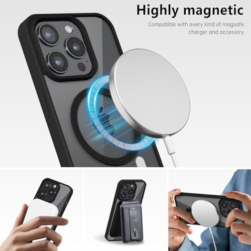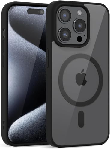 Generic - جراب حماية مغناطيسي متوافق مع ماج سيف بتصميم ممتص للصدمات مع إطار من البولي يوريثين المقاوم للحرارة بلون سادة مطفي وظهر شفاف مضاد للخدش لموبايل آيفون 15 برو 6.1 بوصة