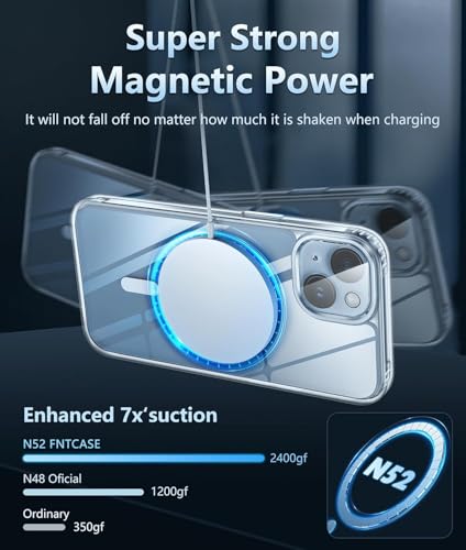 - جذب مغناطيسي: متوافق مع الشواحن المغناطيسية والشواحن اللاسلكية الأخرى بتقنية كيو اي بدون تأثير على الإشارة. يحتوي جراب ايفون 15 على 38 مغناطيسًا مدمجًا سوبر N52. يصل جاذبيته المغناطيسية إلى 2400 جرام لكل ساعة، وهو أقوى 7 مرات تقريبًا من العادي، وبالتالي لن يسقط بغض النظر عن كيفية اهتزازه عند الشحن