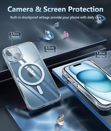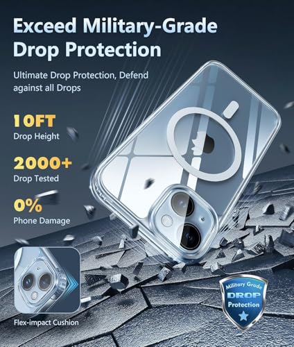 Generic - جراب لهاتف ايفون 15: يدعم الشحن المغناطيسي من الدرجة العسكرية للحماية السقوط مضاد للاصفرار - ممتص صدمات واقٍ متين ومتين 6.1 بوصة شفاف حافظة بسيطة البولي بروبلين